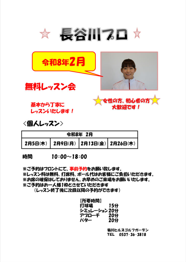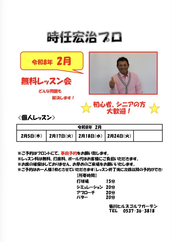2月のプロ無料レッスン日程出ました!